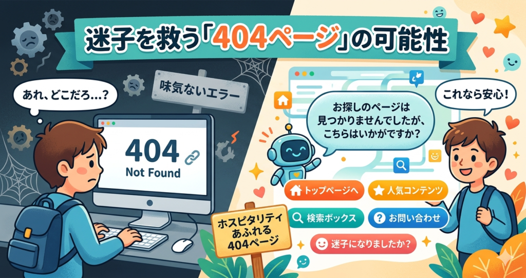 ホスピタリティは、相手が困っているときにこそ表れます。404ページは、そのサイトが訪問者のことをどこまで考えているかを映す、小さな鏡のようなもの。